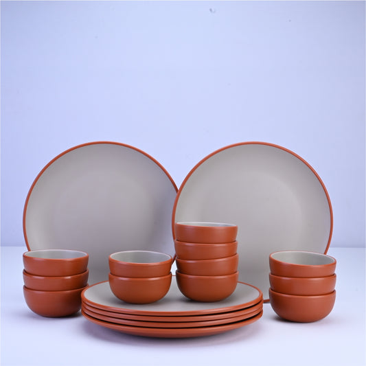 31 pc Dinner Set 2 Tone - Terracota and Brown