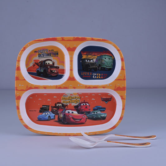 3 pc Rect 5Plate Fork & Spoon Set - Cars