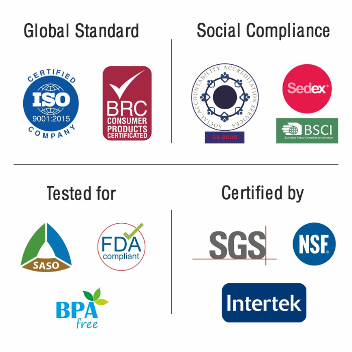 Servewell operates in compliance with internationally recognised quality management, product safety, and social responsibility standards. Our manufacturing units are regularly audited and certified by leading global agencies, ensuring consistency, reliability, and ethical sourcing across all product lines.