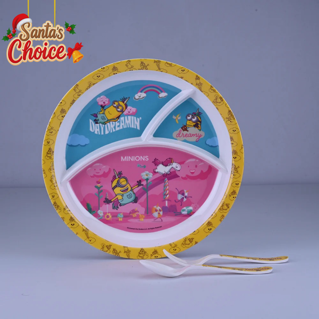 Create a fuss-free eating experience for your kids with the Servewell 3 Piece and 3 partition Minions set! This plate offers everything that your kid needs to have a comfortable meal, plus it will give them some happy Minion cuddles. The plate has three partitions for rice, pasta, and snacks along with a matching spoon and a fork, making it the perfect choice for your little one!