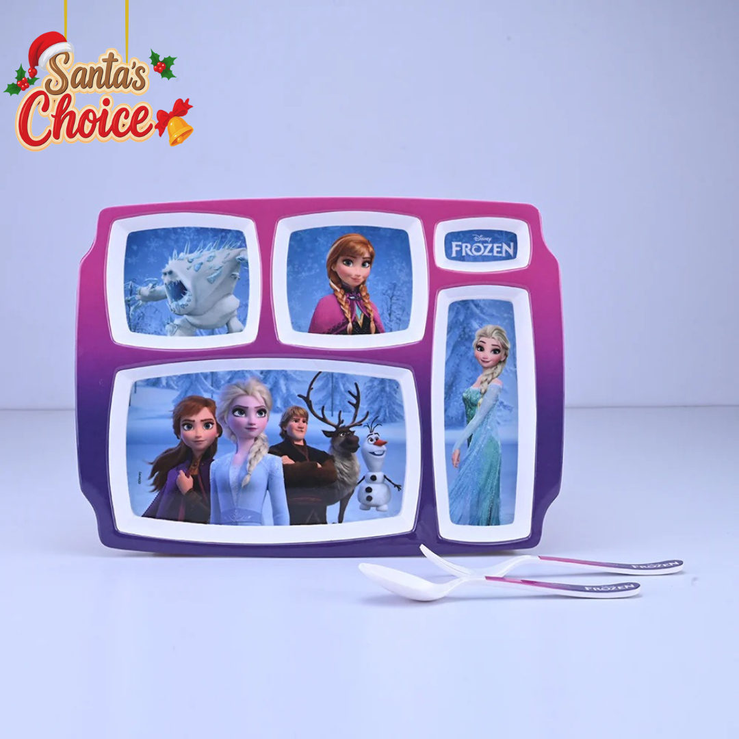 A 3pc set of frozen characters with 5 partitions plate, fork and spoon that creates fun times for kids during breakfast, lunch and dinner. Perfect way to introduce your toddlers and kids to organised and mess free meals. Featuring adorable frozen characters on all its components - each piece can be used separately too.