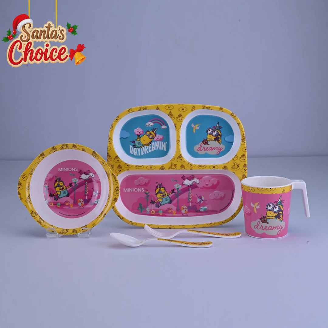 It’s colorful, convenient and oh-so cute! Our Minions 5 piece set is all you need to elevate your child’s mood and make their meal time even more fun and fulfilling. With an adorable minions themed plate in quirky white and blue colors, it has 3 separate partitions, a bowl for their favorite snack items and a pair of a spoon and fork. Are you ready to make your kid super happy? We sure are!