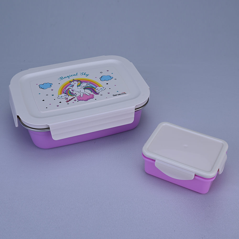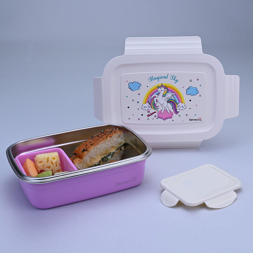 Add a touch of magic to your lunch routine with our Unicorn-themed lunch box. Elevate your dining experience with Bite - where quality meets fantasy. Grab yours now and make every meal a delightful journey into the world of Unicorns!